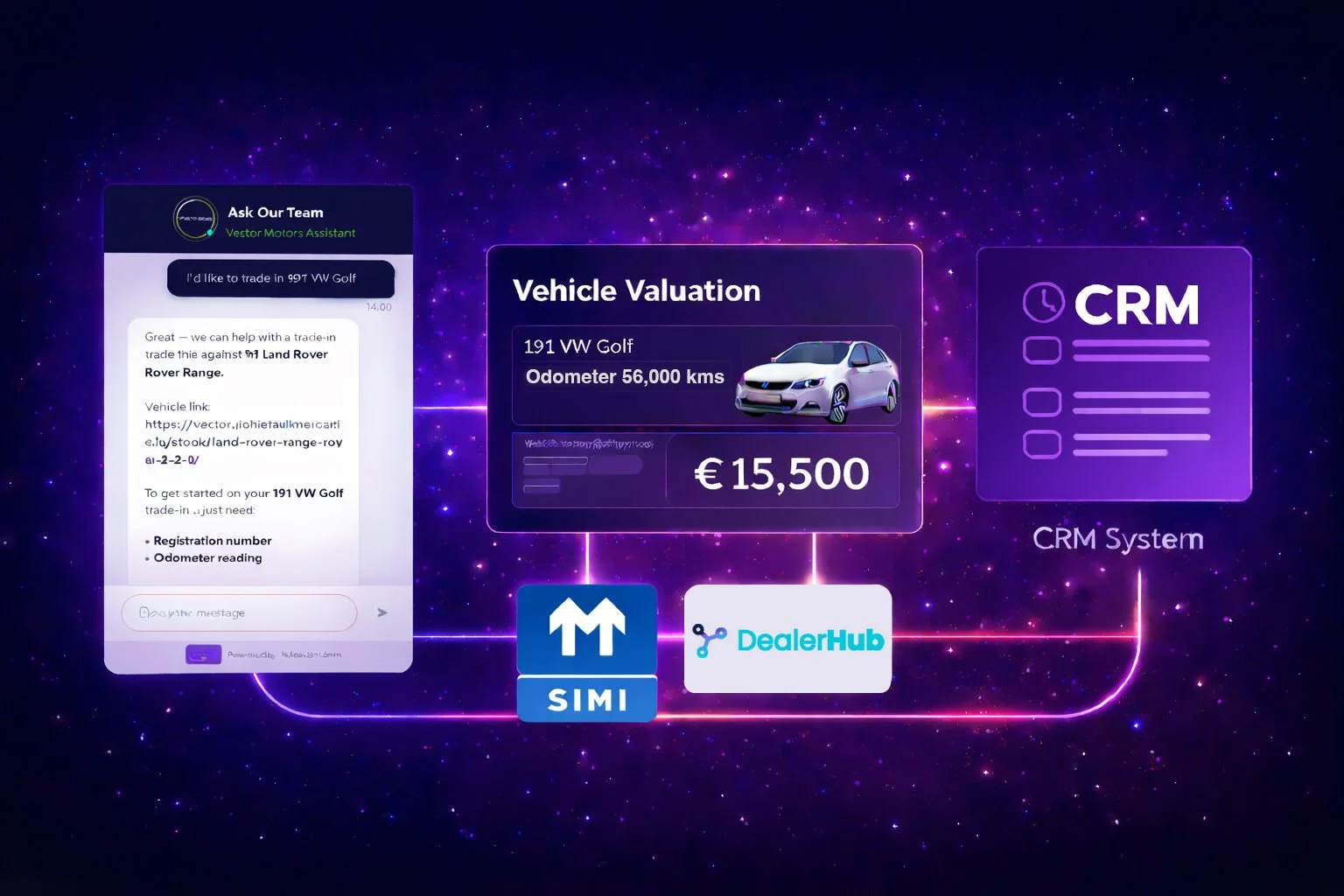 Our AI chatbots are specifically designed for the Automotive industry including tons of integration for part exchange management, finance applications, stock system integrations, CRM & DMS integrations and many many more.